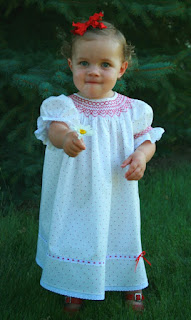 Kerry started smocking this Spring and made two look alike dresses for her granddaughters.